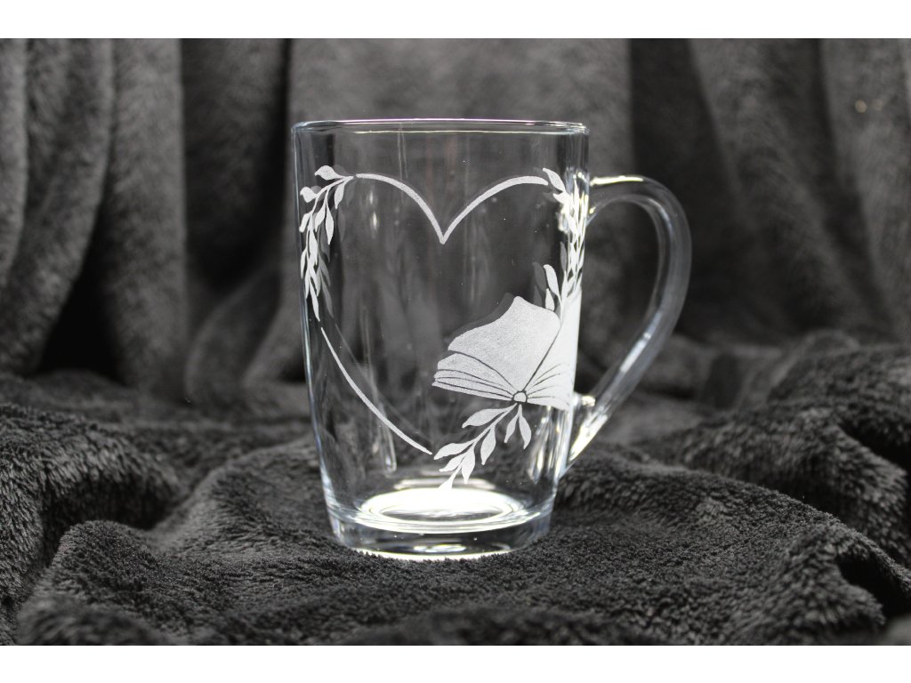 Ručně gravírovaná sklenice na čaj/kávu 300ml, silné sklo, pocitově těžší hrnek.