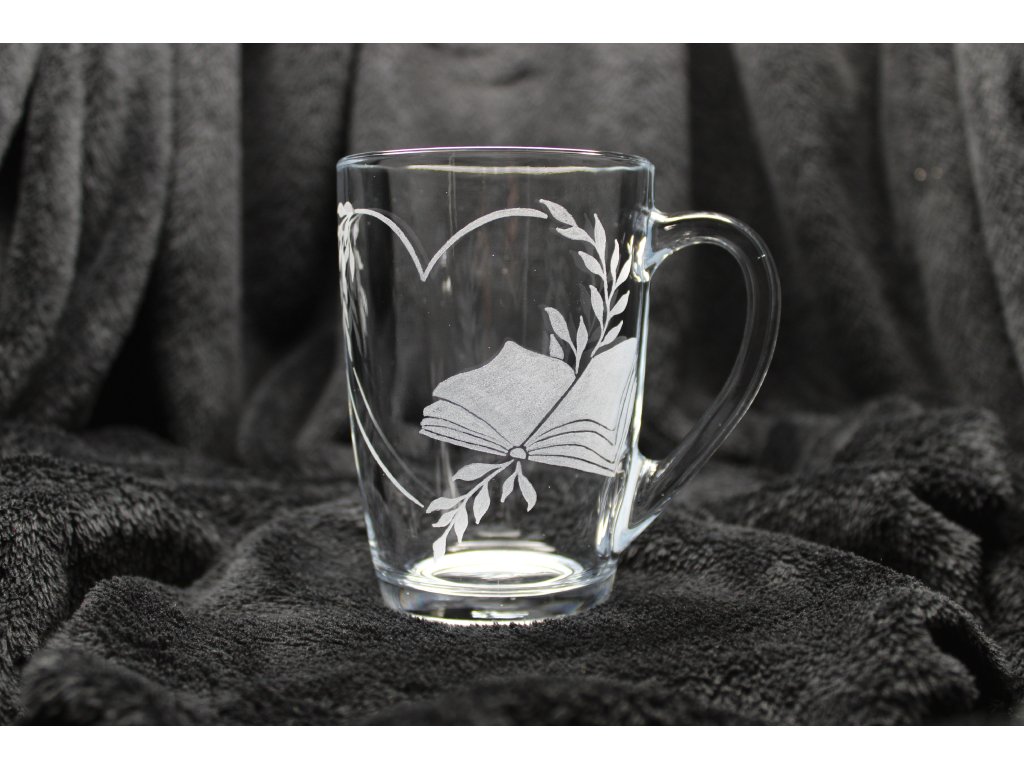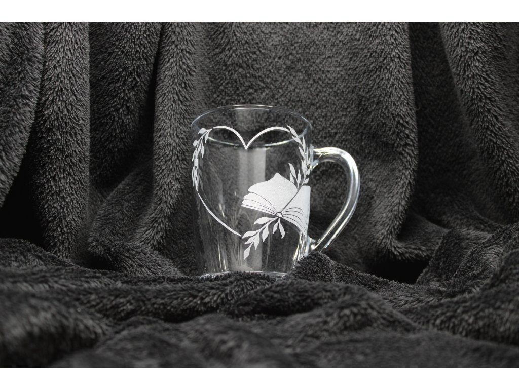 Ručně gravírovaná sklenice na čaj/kávu 300ml, silné sklo, pocitově těžší hrnek.