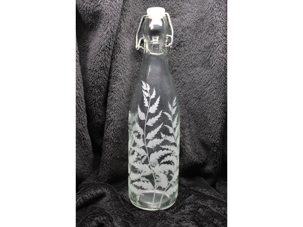 Ručně gravírovaná láhev 0,5l, ideální na limonádu, čaj či sirup, uzávěr je oddělený gumou a kompletně těsní, tekutina se nevylije a uzávěr jemným tlakem nepovolí.