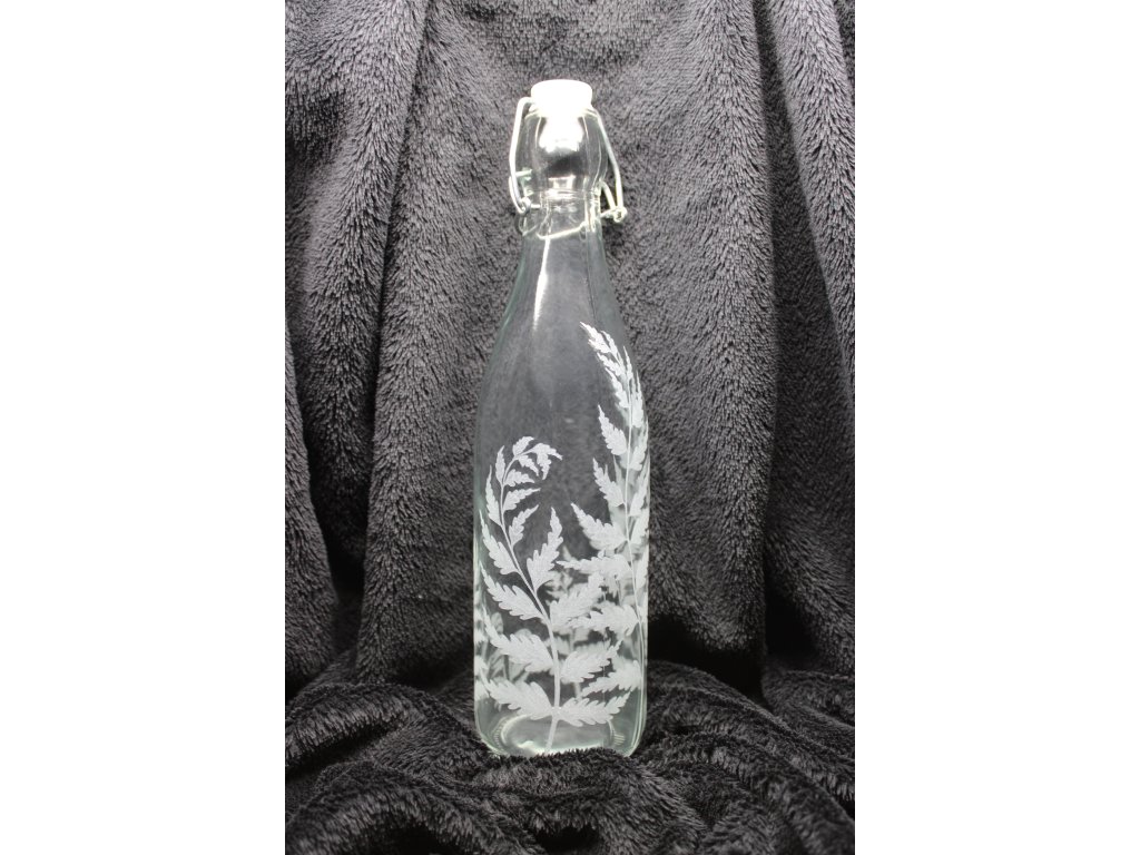 Ručně gravírovaná láhev 0,5l, ideální na limonádu, čaj či sirup, uzávěr je oddělený gumou a kompletně těsní, tekutina se nevylije a uzávěr jemným tlakem nepovolí.