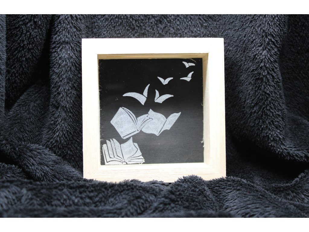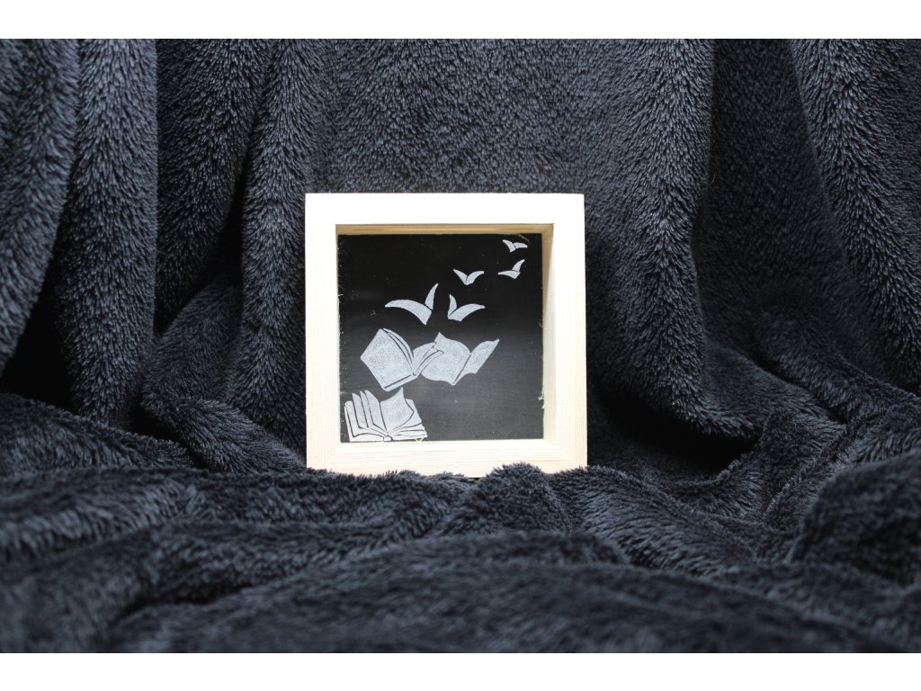 Ručně gravírovaná dřevěná pokladnička 10x10cm, zadní vnitřní strana zabarvená do černa, zbytek povrchu světlé dřevo. Pokladnička je určena pro náročné čtenáře kterým knihy dělají díry do rozpočtu.