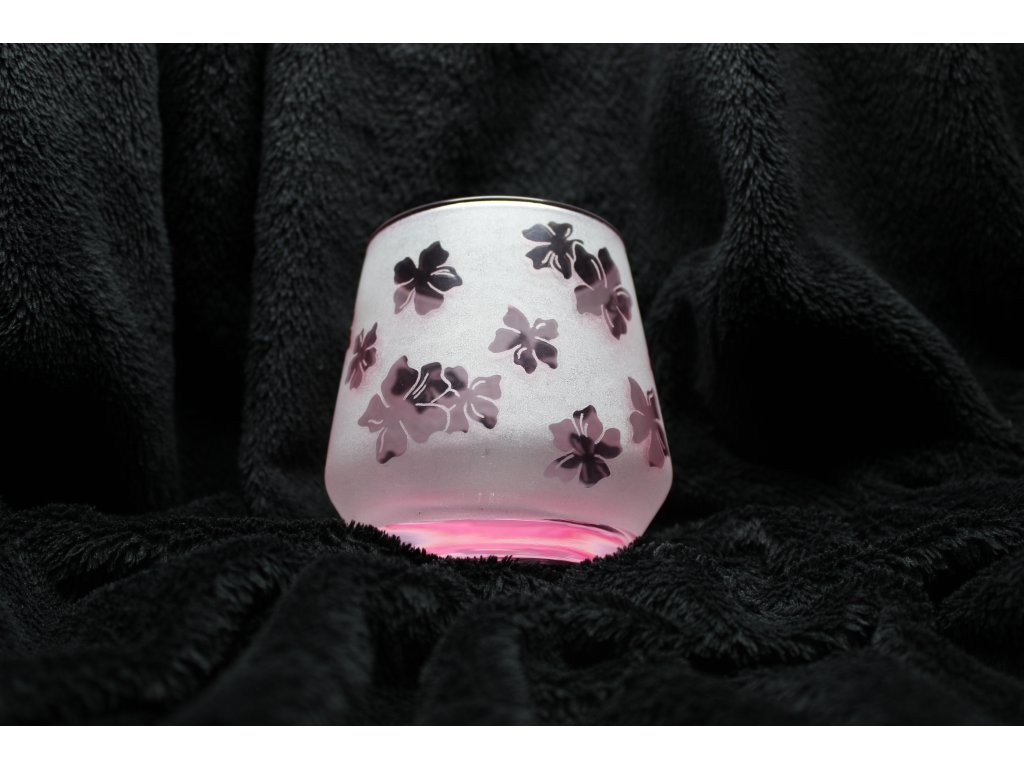 Gravírování je po obvodu celé sklenice, jde o invertované gravírování, sklenice tak získává matný vzhled