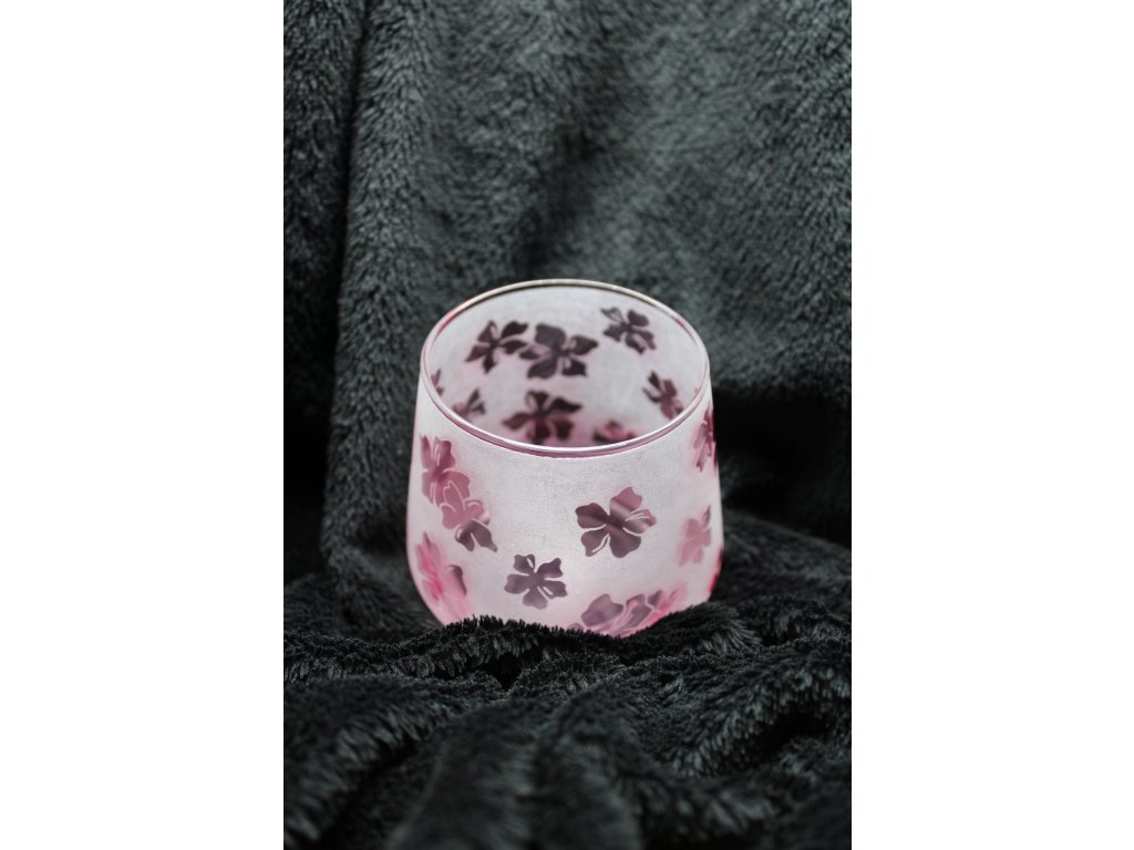 Ručně gravírovaná sklenička na nealko a limonádu 320 ml, invertované gravírování, sklenice má narůžovělou barvu.